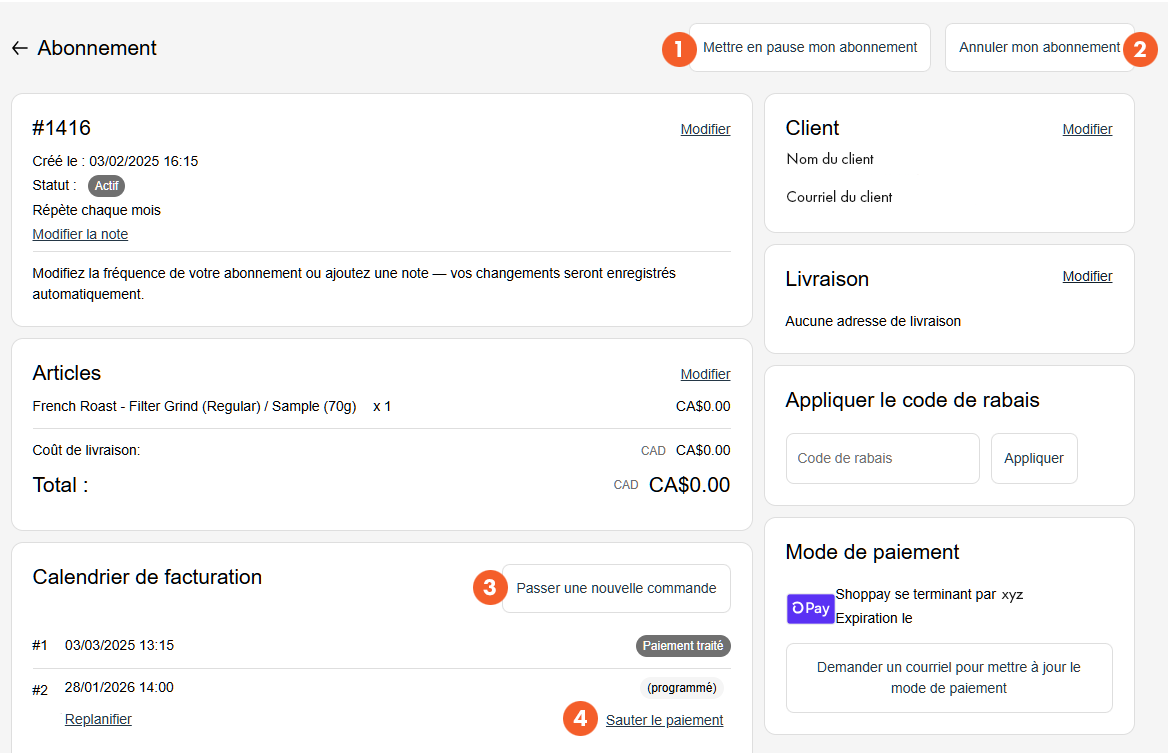 Le prix de l'abonnement sera ajusté au nouveau prix lors de votre prochaine commande.
