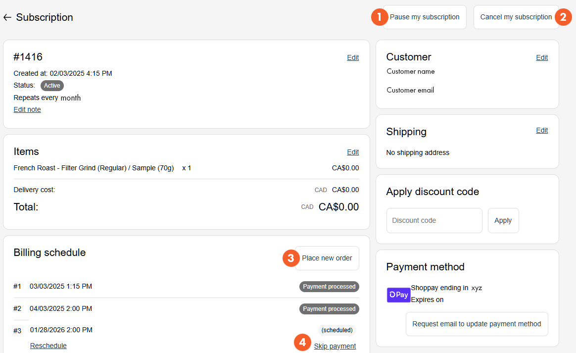 Access your subscription portal, click on modify delivery, change your address and save. Your next order will be delivered to your new address. Please note that if you wish to delete an address , this must be done in your customer account.